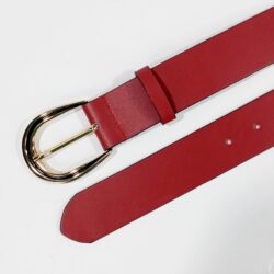 Curea din piele naturala grena cu catarama metalica rotunda aurie 6 cm