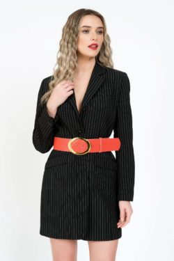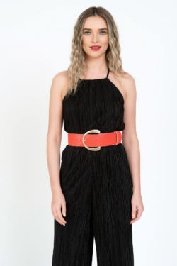 Curea din piele naturala portocalie -print croco cu catarama metalica ovala aurie ,6cm